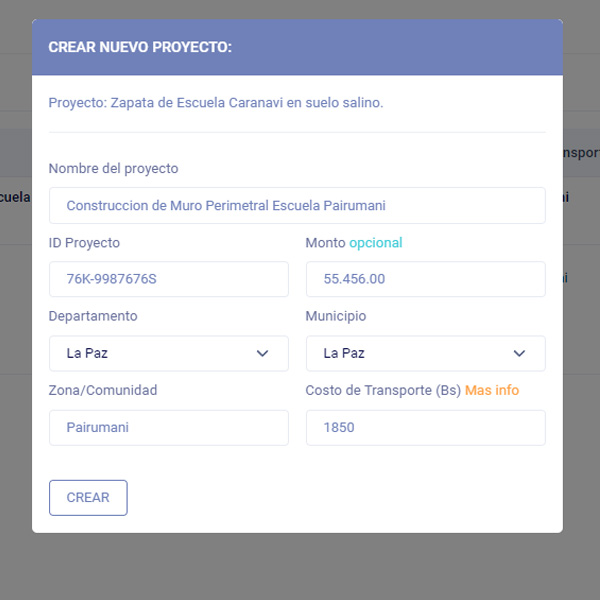 Para cada presupuesto debe tener el Nombre del Proyecto, Numero del proyecto, ubicación (departamento, municipio y zona/comunidad).